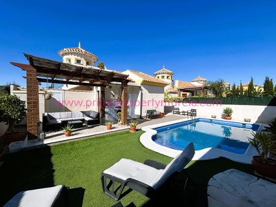 THIS WELL PRESENTED 2 BEDROOM, 1 SHOWER ROOM, DETACHED CAPRICHO STYLE VILLA IS SITUATED ON A 300m2 PLOT AT THE MAZARRON COUNTRY CLUB, MURCIA. The property has a fabulous salt water swimming pool and there is hot and cold air-conditioning throughout.