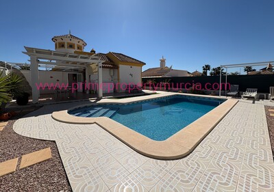THIS WELL PRESENTED 2 BEDROOM, 1 BATHROOM CAPRICHO STYLE VILLA IS SITUATED ON A SPACIOUS PLOT OF 393m2 WITH A LARGE PRIVATE SWIMMING POOL AND SOLAR PANELS AT THE POPULAR MAZARRON COUNTRY CLUB, MURCIA. THE PROPERTY ALSO HAS A MODERN KITCHEN, GLAZED WINTER GARDEN, LOG BURNER AND HOT + COLD AIR CONDITIONING IN THE LIVING AND DINING AREA.